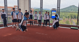 “两米三,你太厉害了,我也来试试”、“400米,咱们再跑一圈”……广州市天河外国语学校智慧城校区(以下简称天外)的操场上热闹非凡,同学们有空就结伴来到操场锻炼,校内掀起一阵运动热潮。 原来,在第十五届全国运动会在粤港澳举办之际,为弘扬全民健身的体育精神,丰富校园文化生活,增强学生身体素质,10月-11月,天外举办了以“喝彩全运聚力量·拼搏天外创辉煌”为主题的校园智慧体育挑战赛。活动分设阳光跑、立定跳远等项目,活动期内运动战绩排名前列的同学及运动总次数排名前列的班级都会获得相应荣誉奖励。